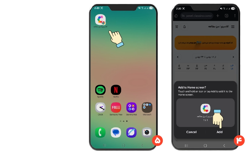 - مرحله چهارم: مجددا روی گزینه « Add» کلیک کنید تا اپلیکیش کلاسینو در گوشی شما نصب شود.